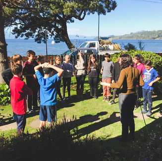 Por último, los alumnos de 2º y 6º básico, participaron de la celebración organizada por el Teatro del Lago y Librería Qué Leo, donde aprendieron más sobre Gabriela Mistral y escucharon el cuento "Lucila a través del río" de nuestras apoderadas Camila Villalobos y Florencia Reid.